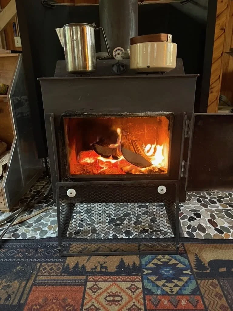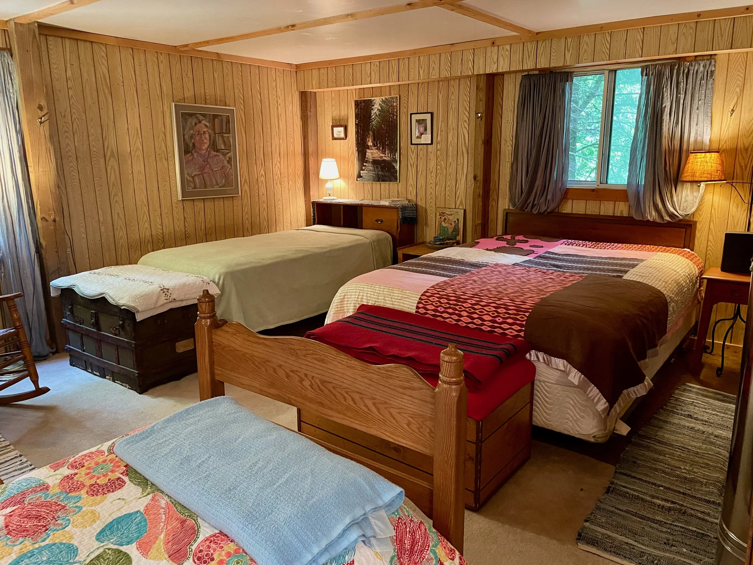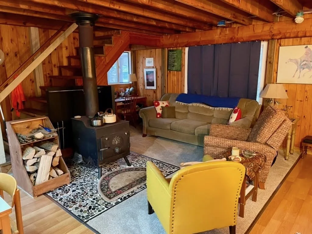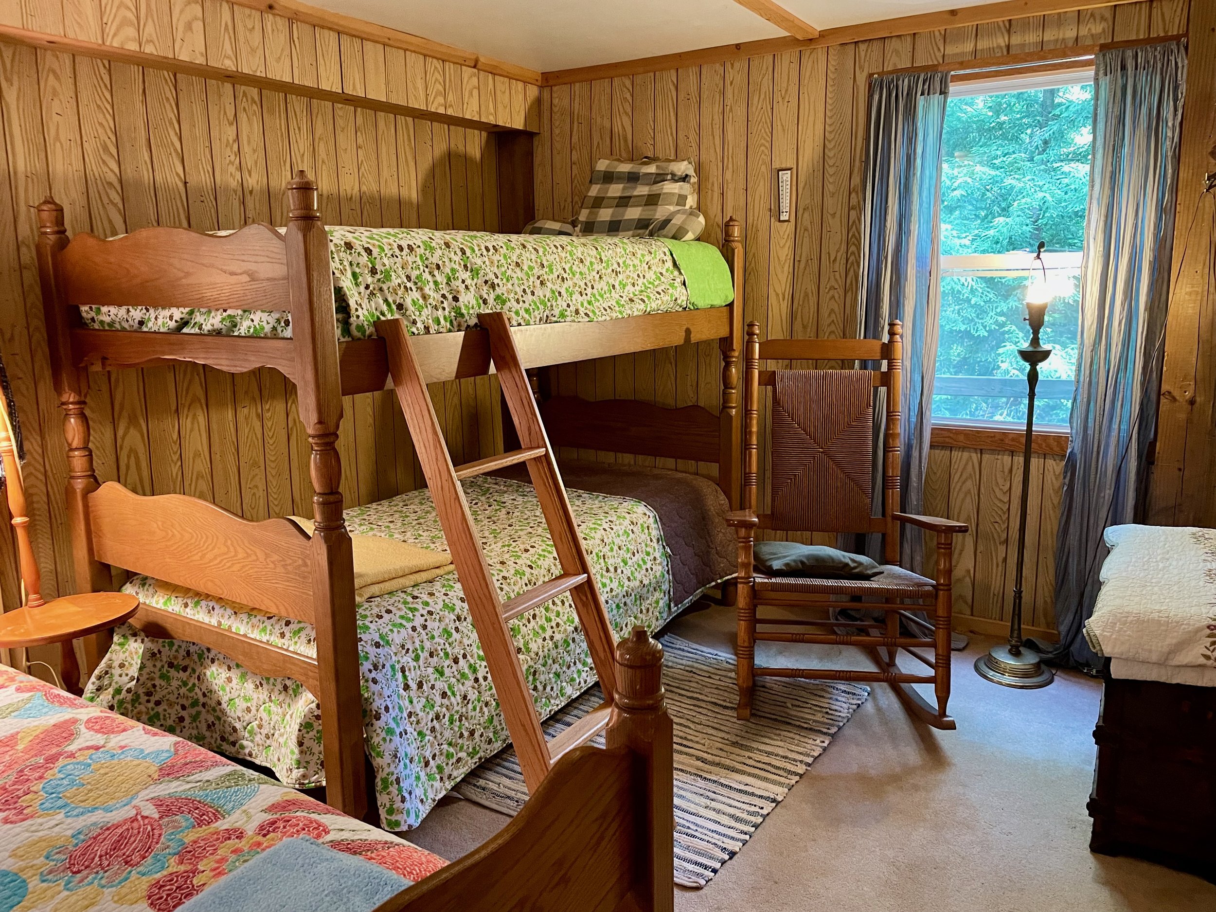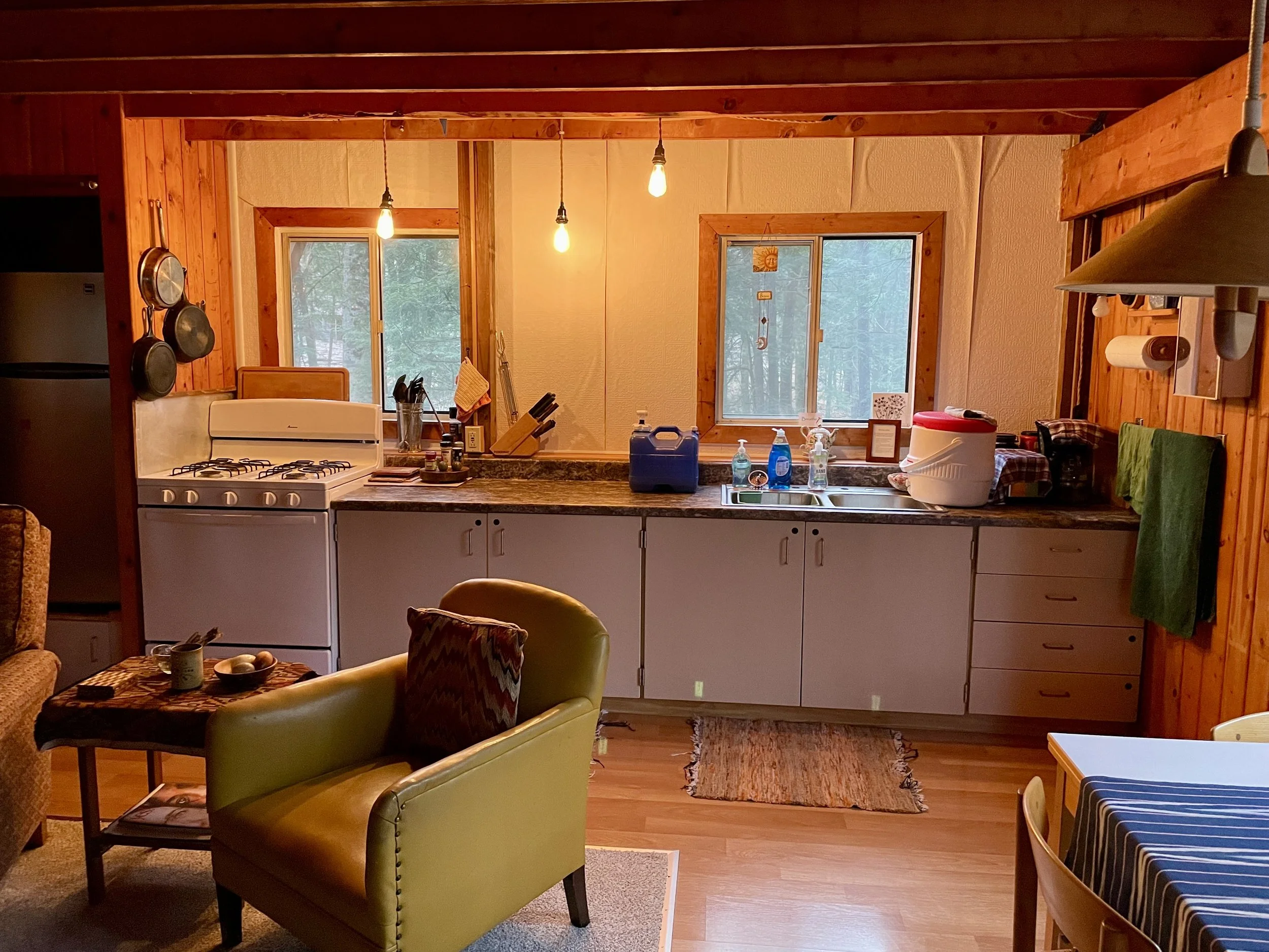 Morning Glory has electricity, running (cold) water, a full kitchen, a screened-in porch, wood stove for heating (wood supplied) and a composting outhouse.